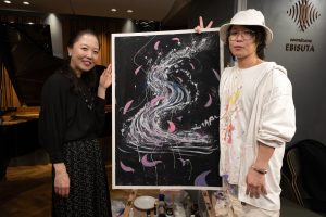 これがなかなか面白い企画だったようで、2度目の演奏で「絵と音楽が一体化していた」、「会場全体が一体化した」などと、お客様からご感想をいただきました。私自身も、洸太さんの絵から自由や勢いを得て、2度目はとても楽しく弾かせていただきました♪