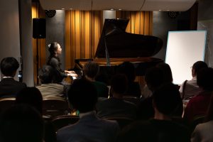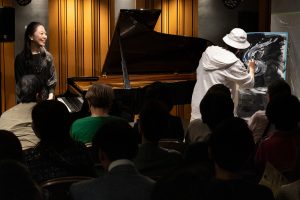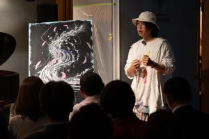 5.コンサートの目玉、「水の戯れ」で神子柴洸太さんに絵を描いていただくライブパフォーマンスが始まりました。